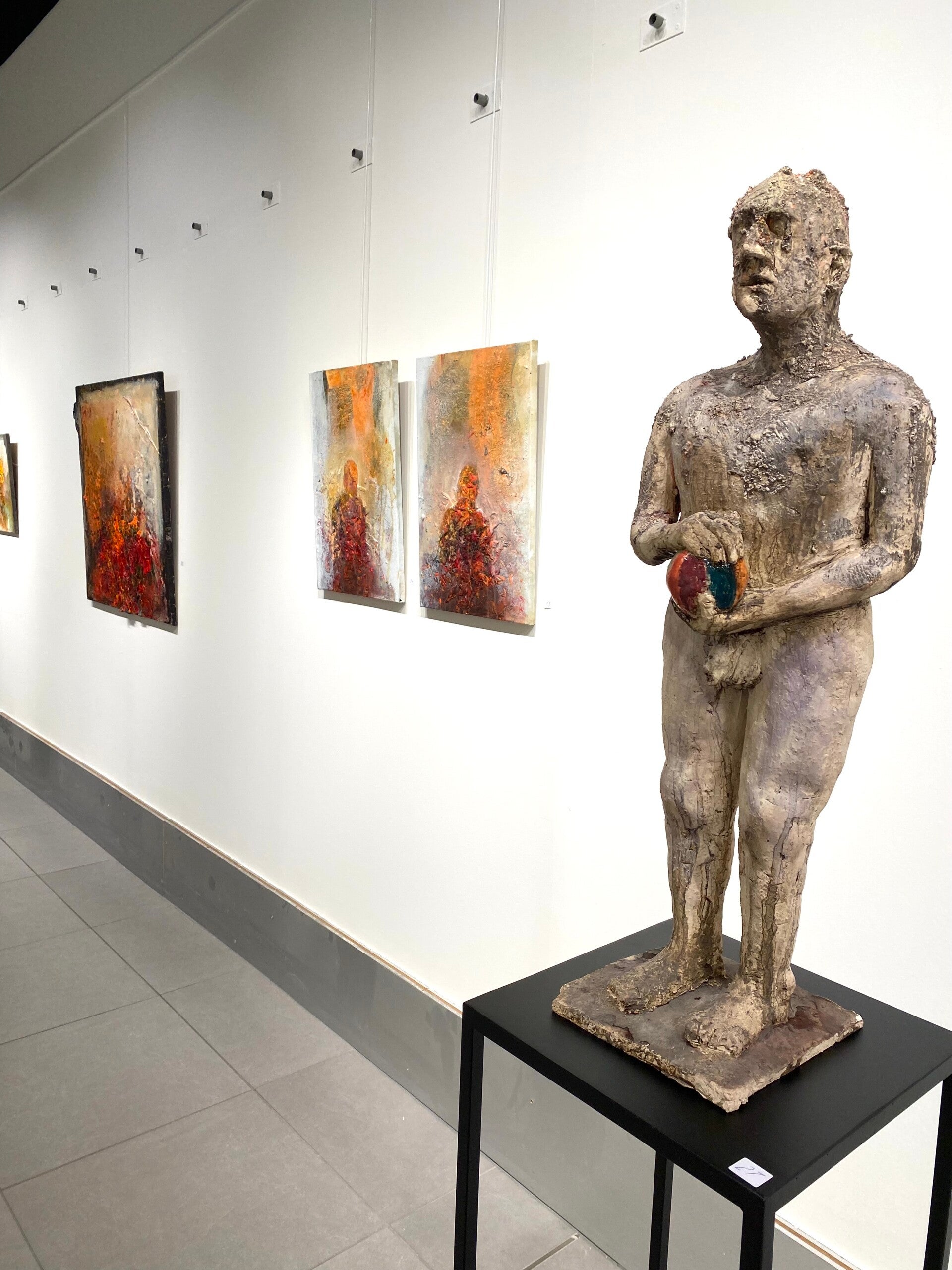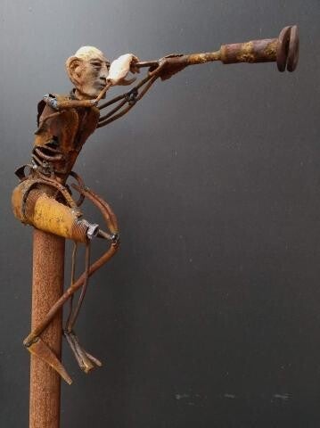 Jan maakt eigenzinnige beelden uit gerecycleerd, roestig ijzer, waarin hij ruwe materialen omvormt tot karaktervolle figuren. Als opvallend detail werkt hij de hoofdjes en handjes uit in keramiek, wat zijn sculpturen een speelse en menselijke uitstraling geeft. Zijn werk zit vol creativiteit en vakmanschap, en de nodige humor ontbreekt zeker niet: elk beeld vertelt als het ware een klein verhaal dat meteen een glimlach oproept.